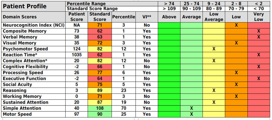- CNS Vital Signs is widely used assessment procedure that utilizes scientifically validated, objective, and reliable computerized neuropsychological tests to evaluate the neurocognitive status of patients and covers a range of mental processes from simple motor performance, attention, memory, to executive functions. CNS Vital Signs also contains over 50 well known evidence-based clinical and quality measure (behaviors, symptoms, comorbidities, quality-of-life) rating scales. The assessment platform auto-scores and generates user-friendly reports with summary dashboards, individual responses, and longitudinal views. The neurocognitive report presents the raw test scores, domain scores with a comparison of age-adjusted norms, and an overall neurocognition index. The standardized presentation of the report and its data supports the clinicians’ evaluation and management activities.